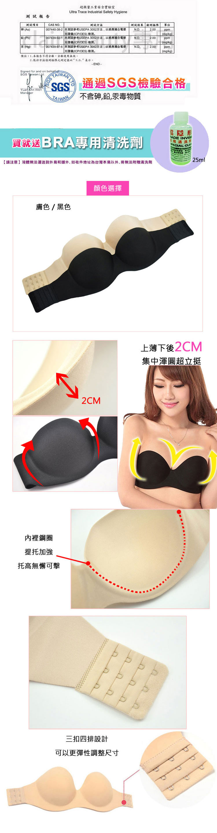 【SBA10】隱形胸罩內衣BRA婚紗禮服厚約5cm(送清洗劑)商品